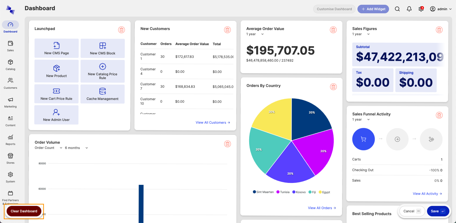 Locate and click the Clear Dashboard button.